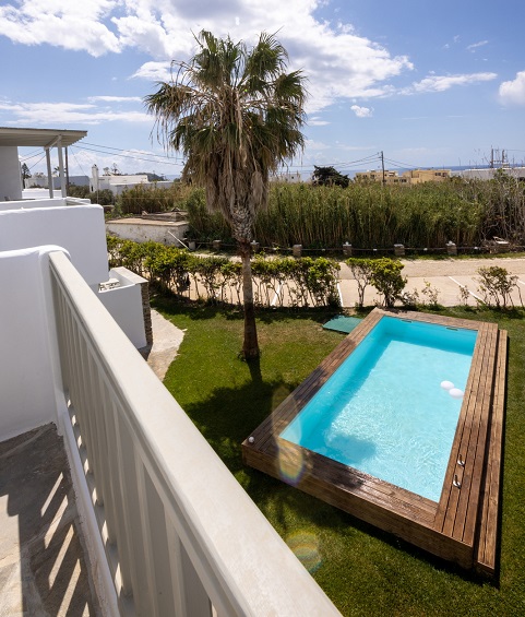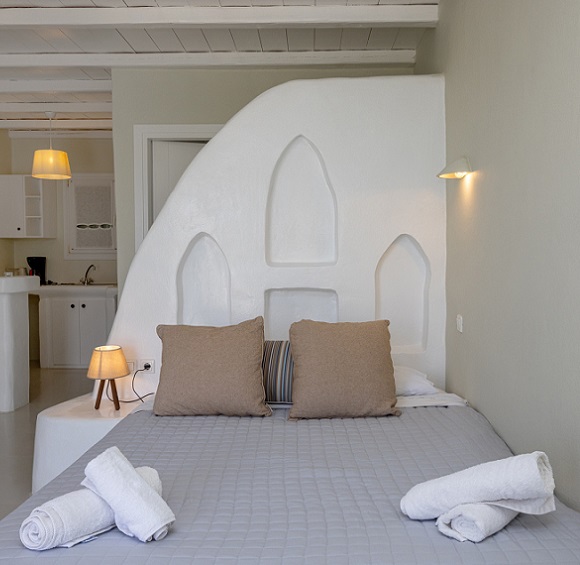 Το σημείο είναι ιδανικό για χαλάρωση και ήρεμες διακοπές, ενώ ταυτόχρονα βρίσκεται πολύ κοντά σε εστιατόρια της περιοχής, στις γειτονικές παραλίες και σε απόσταση αναπνοής (περίπου 2,5 χλμ.) από τη Χώρα, το κέντρο του νησιού.